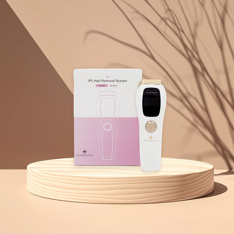Het Dermalaze IPL apparaat gebruikt Intense Pulsed Light (IPL) technologie om de haarwortel te verzwakken. Door gerichte lichtpulsen wordt de melanine in de haarfollikel afgebroken, waardoor het haar vanzelf uitvalt en de hergroei vertraagt. Na meerdere behandelingen wordt de haargroei zichtbaar verminderd.